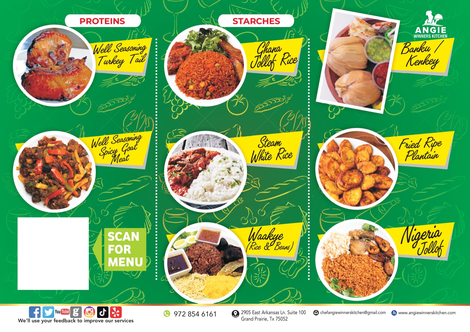 Our restaurant is dedicated to serving authentic and delicious African cuisine that will transport you to the heart of the continent. At Angie Winners Kitchen, we are passionate about sharing the diverse culinary of Africa with our guests.
